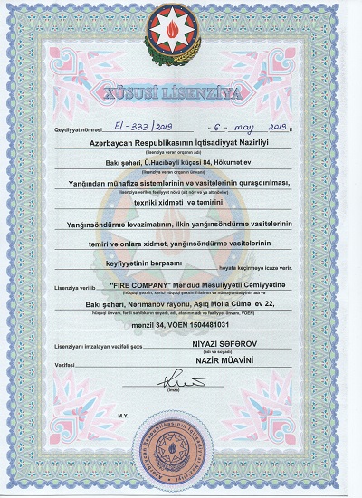Özünü əsl professional kimi tanıdan "FireCompany" MMC yanğınsöndürmə texnikası məhsulunun istehsalı və satışını, yanğın siqnalizasiya və mühafizə sistemləri; yanğınsöndürmə balonlarının satışı, servisi və təkrar dolum xidmətini; sulu, qazlı, köpüklü yanğın avtomatik yanğınsöndürmə sistemlərinin;havalandırma və tüstüsovurma sistemlərinin; kamera-nəzarət və girişə nəzarət sistemlərinin; kart-keçid, turniket və şlaqbaum sistemlərinin; qaraj sprinklərinin satışını və quraşdırılmasını; yaşayış və dövlət binalarının, kommersiya obyektlərinin həmin avadanlıqlar və sistemlərlə təchiz edilməsini həyata keçirir. Həmçinin yuxarıdakı fəaliyyət növlərinə görə “FireCompany” MMC şirkəti Fövqəladə Hallar Nazirliyi tərəfindən verilmiş xüsusi razılığa (lisenziyaya) malikdir.
